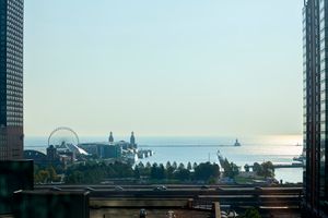 Navy Pier in Chicago is enveloped by the massive Lake Michigan.