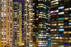 Looking southeast. The lights of the busy city from Northwestern Hospital.